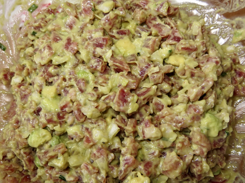Una vez lista la salsa, la vamos añadiendo poco a poco a la mezcla de ingredientes, para que así la cantidad de salsa sea la adecuada para obtener un tartar compacto a la vez que cremoso. Una vez terminado, lo meteremos en la nevera hasta que llegue la hora de servirlo. Para la presentación, usaremos un molde. ¡Queda perfecto y riquísimo untado en tostaditas!